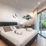 Die Jardines - Tabor 0,1 Garden & Pool View 2B bietet einen Blick auf den Garten und verfügt über ein Bügeleisen/Bügelbrett und eine Klimaanlage sowie über ein Fernsehen mit mehreren Kanälen. Zur Ausstattung des Badezimmers gehören auch eine getrennte Toilette und eine Dusche. Es gibt einen Haartrockner und Badelaken für den Komfort der Gäste.
